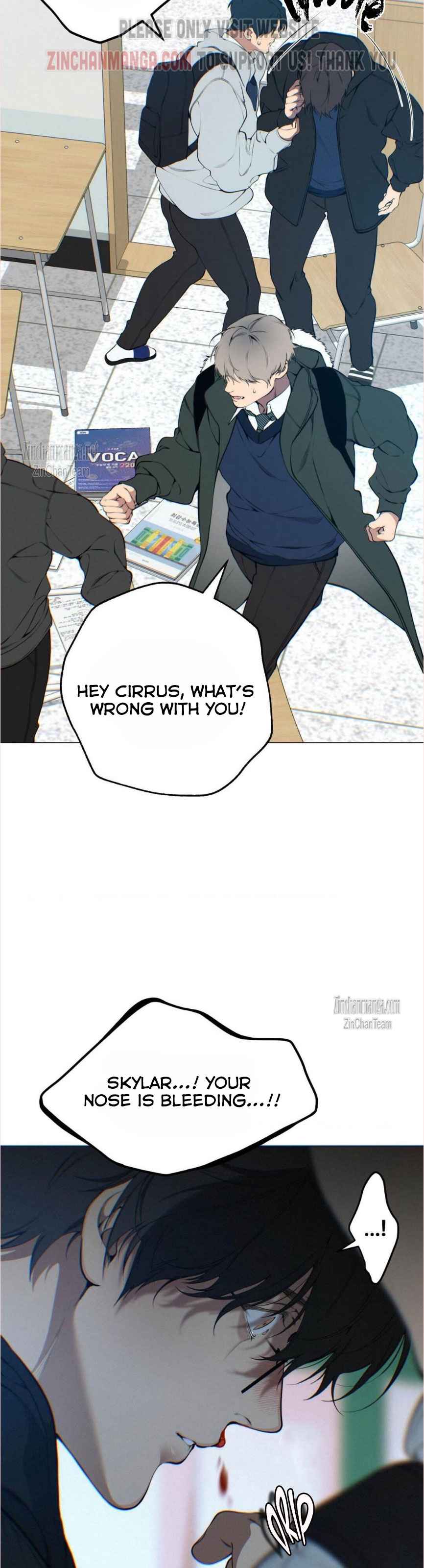 i feel like cirrus pushed/hit skylar bc he saw skylar being all normal and fine after they broke up while cirrus is going insane , btw remember that both skylar and cirrus are mentally ill we SHOULDN’T hate them, the fandom should stop talking abt “happy end” “bad end” bc do u expect cirrus and skylar suddenly forgive each other and kiss? , this chapter was a perfect bc theres still things to deal with in the manhwa right? ,Thanks for the updating (don’t mind my grammer lol)