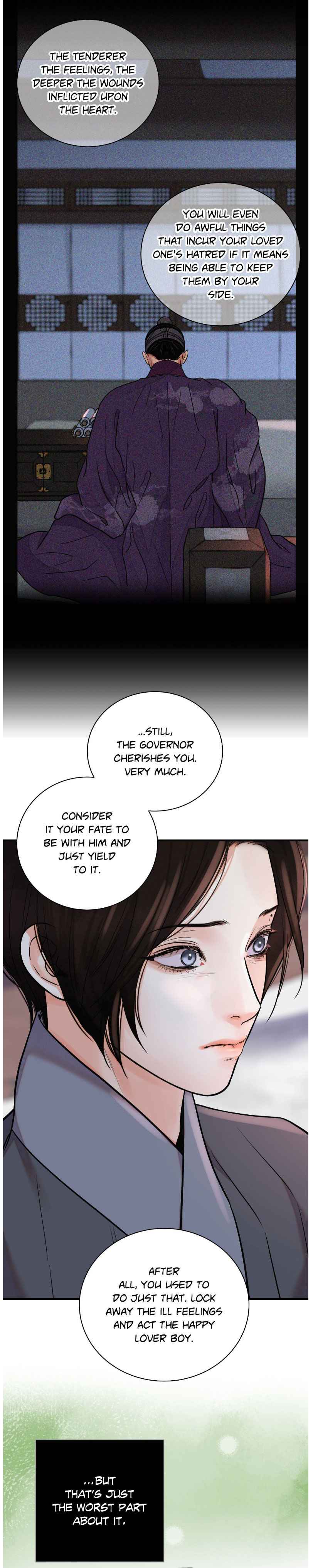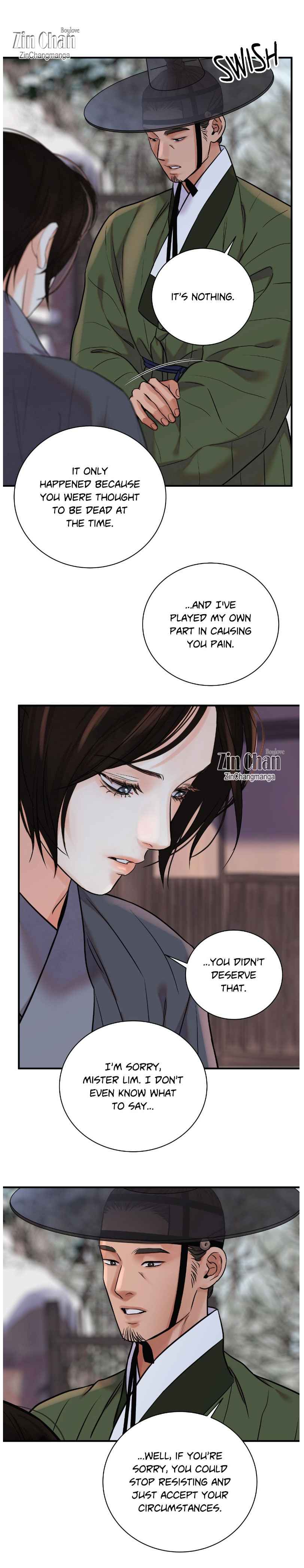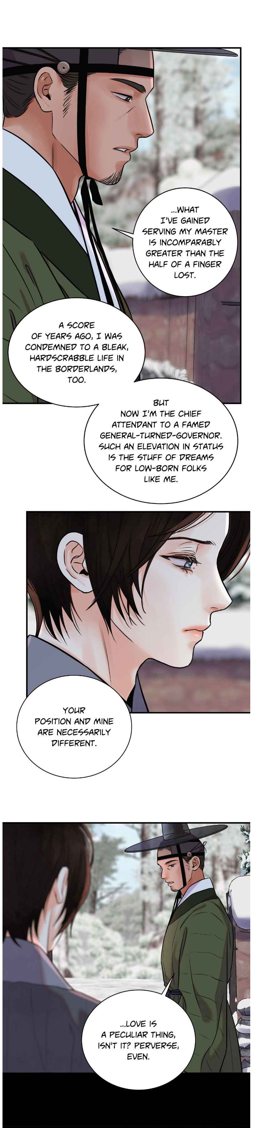 Ahh I actually don’t like how the person tells to our mc to just accept their fate. Wtf seriously? What’s this reasoning! It be best to knowledge that even if his master did something that can’t be forgiven hello still follow him cause of what he gained by serving him and that emotionally he can’t betray him even knowing intellectually that it is wrong. Sorry I love this manhwa it’s just that I prefer that the discussion goes my way. Lol